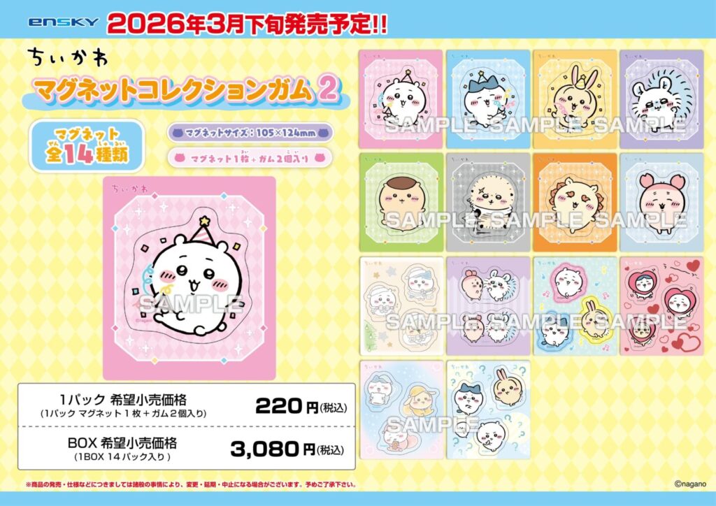 ちいかわの「マグネットコレクションガム」第2弾が、2026年3月下下旬に発売予定。1袋にマグネット1枚と粒ガム2個が入った、おまけ付きのお菓子です。