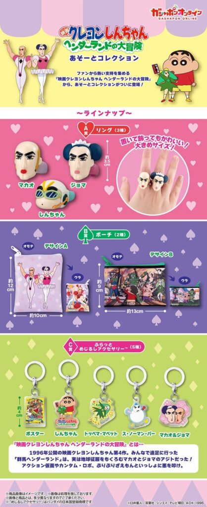 大人気映画『映画クレヨンしんちゃん ヘンダーランドの大冒険』をテーマにした、あそーとコレクションが登場。マカオやジョマをはじめ、作品を彩る個性的で印象的なキャラクターたちがラインナップされています。