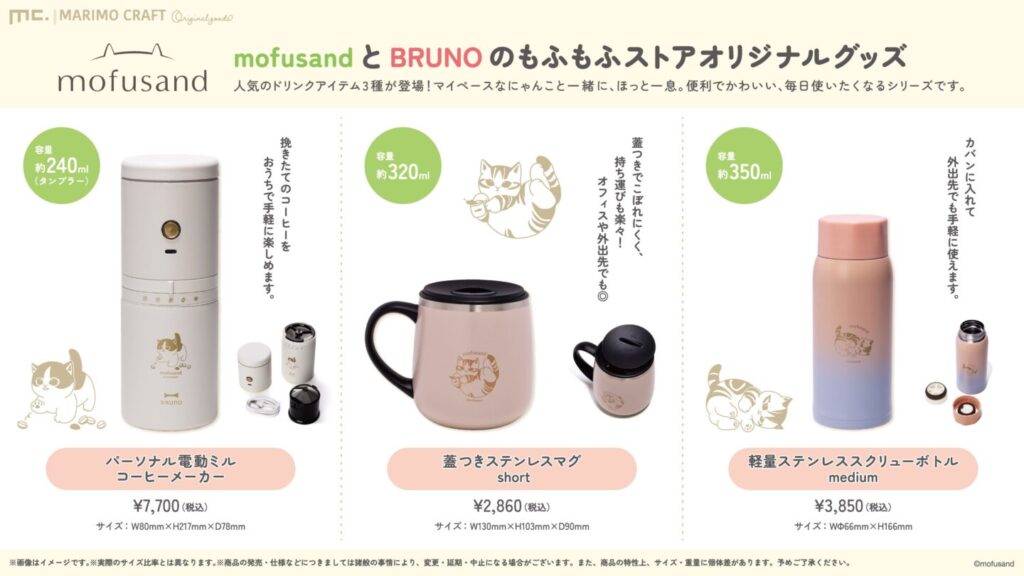 11月7日 mofusand × BRUNO オリジナルグッズ発売