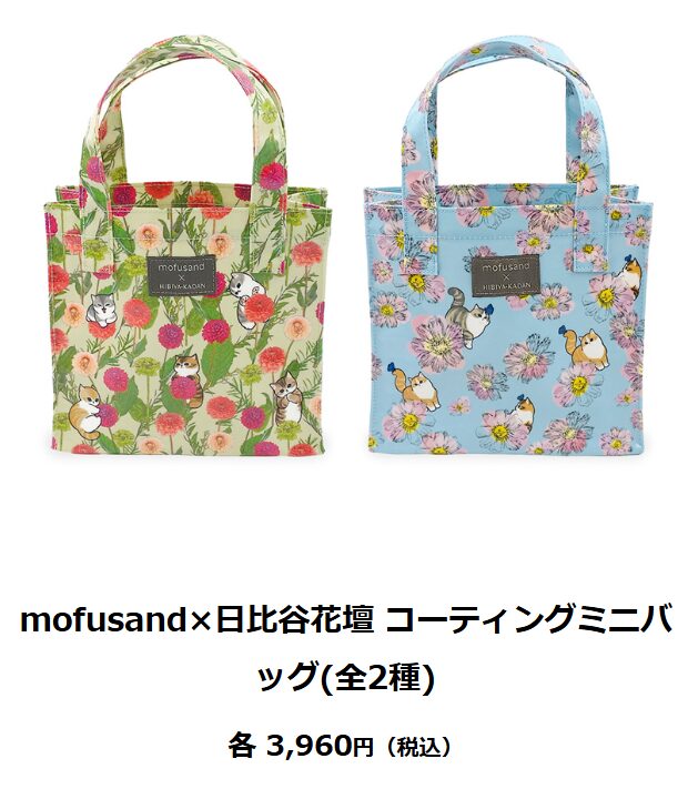 mofusandと日比谷花壇のコラボから、限定デザインのコーティングミニバッグが登場。お花とにゃんこたちを組み合わせたやさしいデザインで、日常使いしやすいサイズ感のアイテムです。