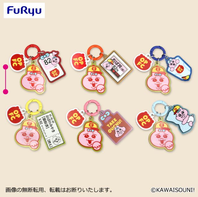 おぱんちゅうさぎが、可愛い“フードコーチュ”デザインでアクリルチャームになって登場。揺れるパーツがじゃらじゃらと可愛く、バッグやポーチにつければ存在感抜群のプライズアイテムです。