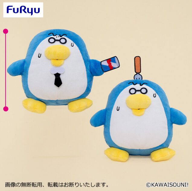 おぱんちゅうさぎの作者「可哀想に!」さんのキャラクター・オタクペンギンのブルブルぬいぐるみがクレーンゲーム景品として登場。手に持ったアイテムや表情など、キャラクターらしいコミカルな雰囲気が楽しめるぬいぐるみです。