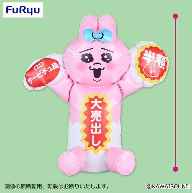 おぱんちゅうさぎのユニークなデザインが目を引く「フレッシュおぱんちゅマーケット エアトイ」がクレーンゲーム景品として登場。空気を入れて膨らませて楽しめるビッグサイズのエアトイです。
