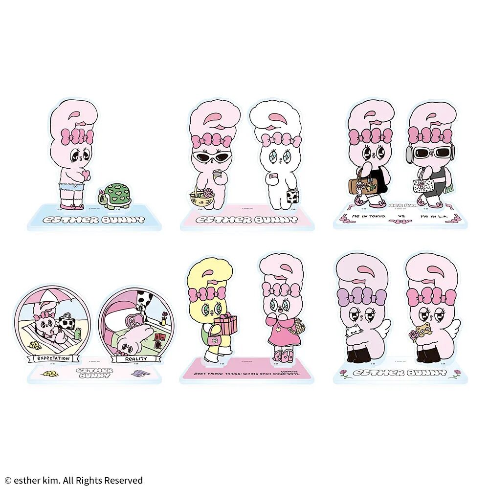 大人気キャラクター「エスターバニー」から、2つセットになったクリアスタンドがプライズで登場。透明感のある素材に可愛いイラストが映える、飾って楽しめるアイテムです。