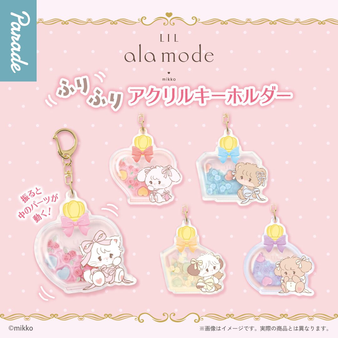 「Lil ala mode」から、香水瓶のようなボトルデザインが可愛いアクリルキーホルダーが登場。中に入ったパーツが動く、遊び心のある仕様が特徴です。