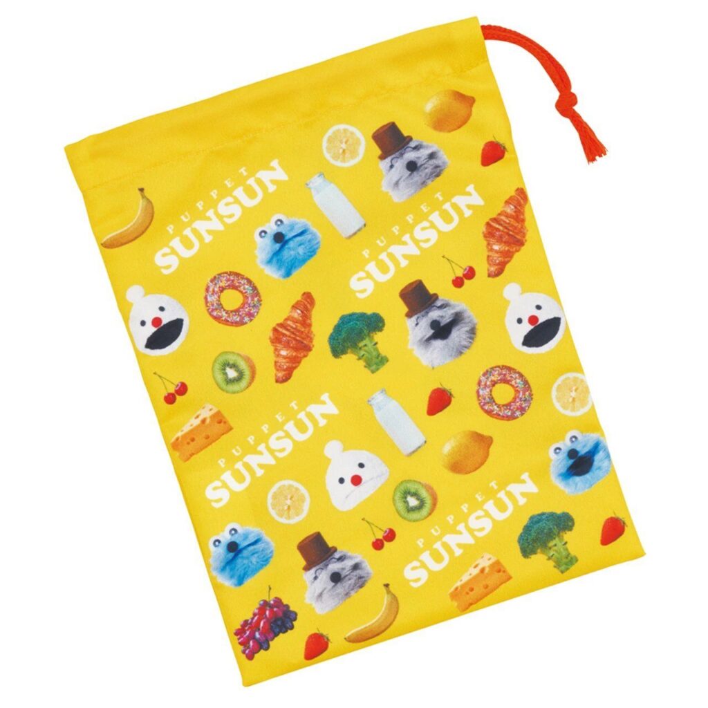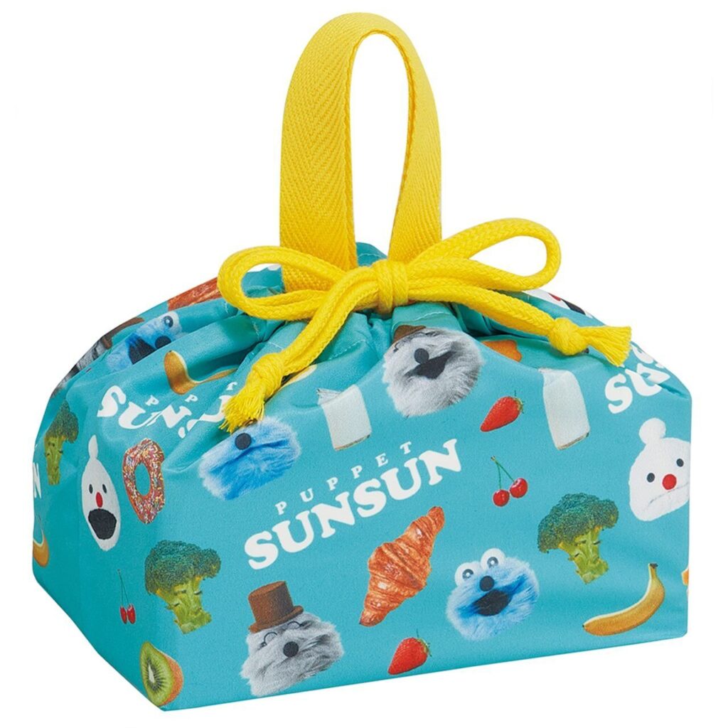 パペットスンスンのお弁当箱を入れるのに便利な巾着タイプの「お弁当袋」が登場。スンスンたちのイラストがデザインされた、毎日使いたくなるランチアイテムです。