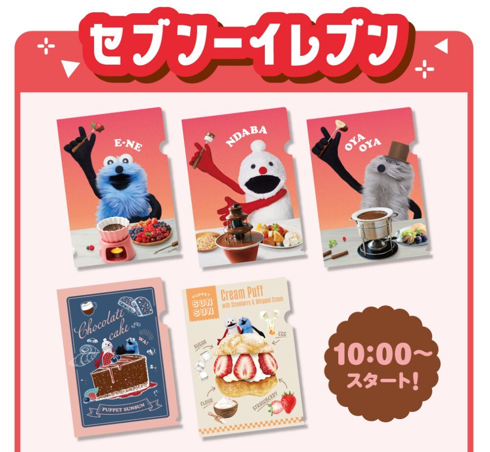 2026年2月3日(火)より、ロッテとパペットスンスンのコラボキャンペーンが全国のコンビニ「セブンイレブン・ファミリーマート・ローソン」でスタートします。対象商品を購入すると、限定デザインのA4クリアファイルがもらえるバレンタインフェアです。