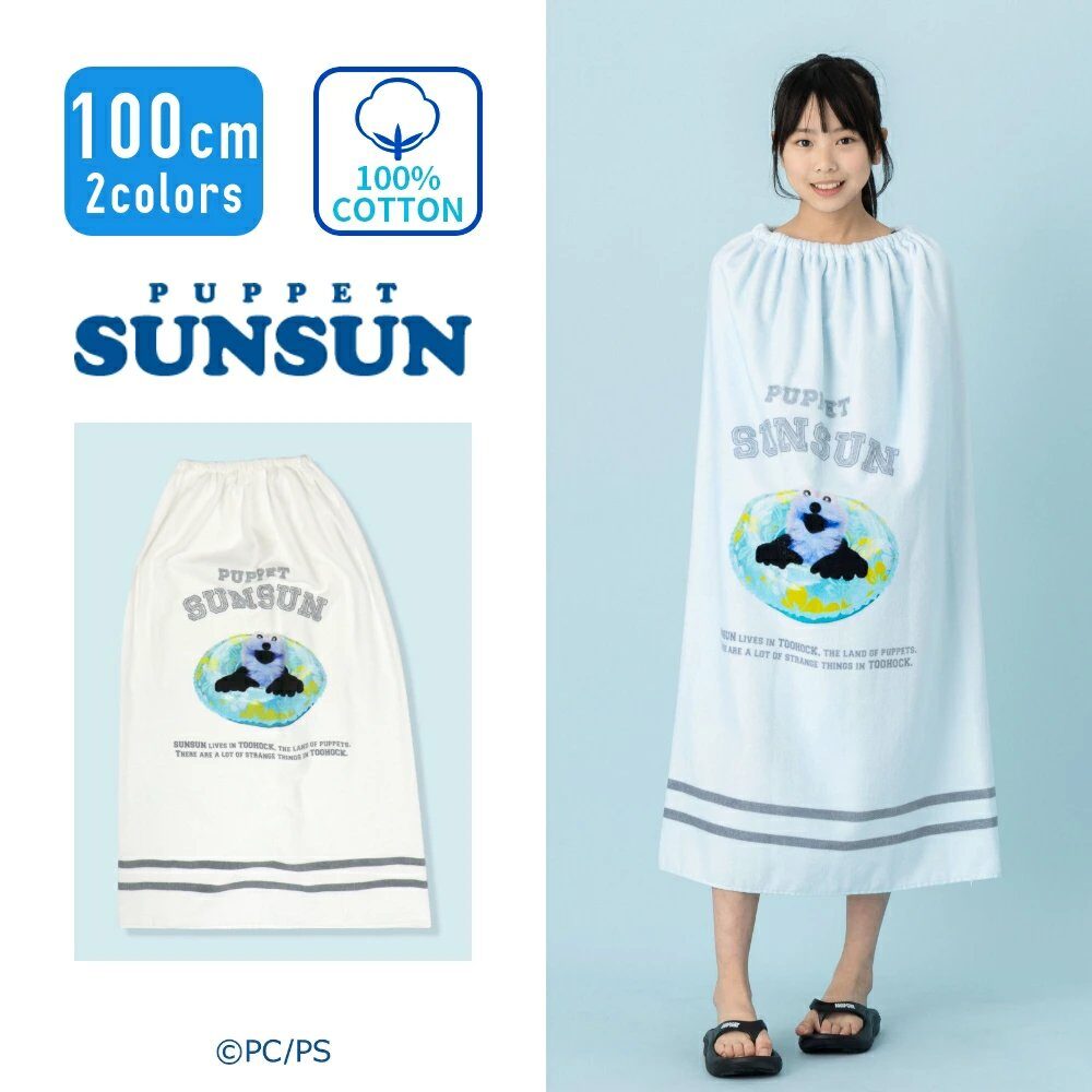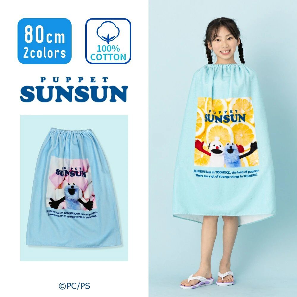 パペットスンスンのラップタオルが新登場。スンスンたちのかわいいデザインが楽しめる、学校やスイミングシーンにぴったりの実用的なアイテムです。