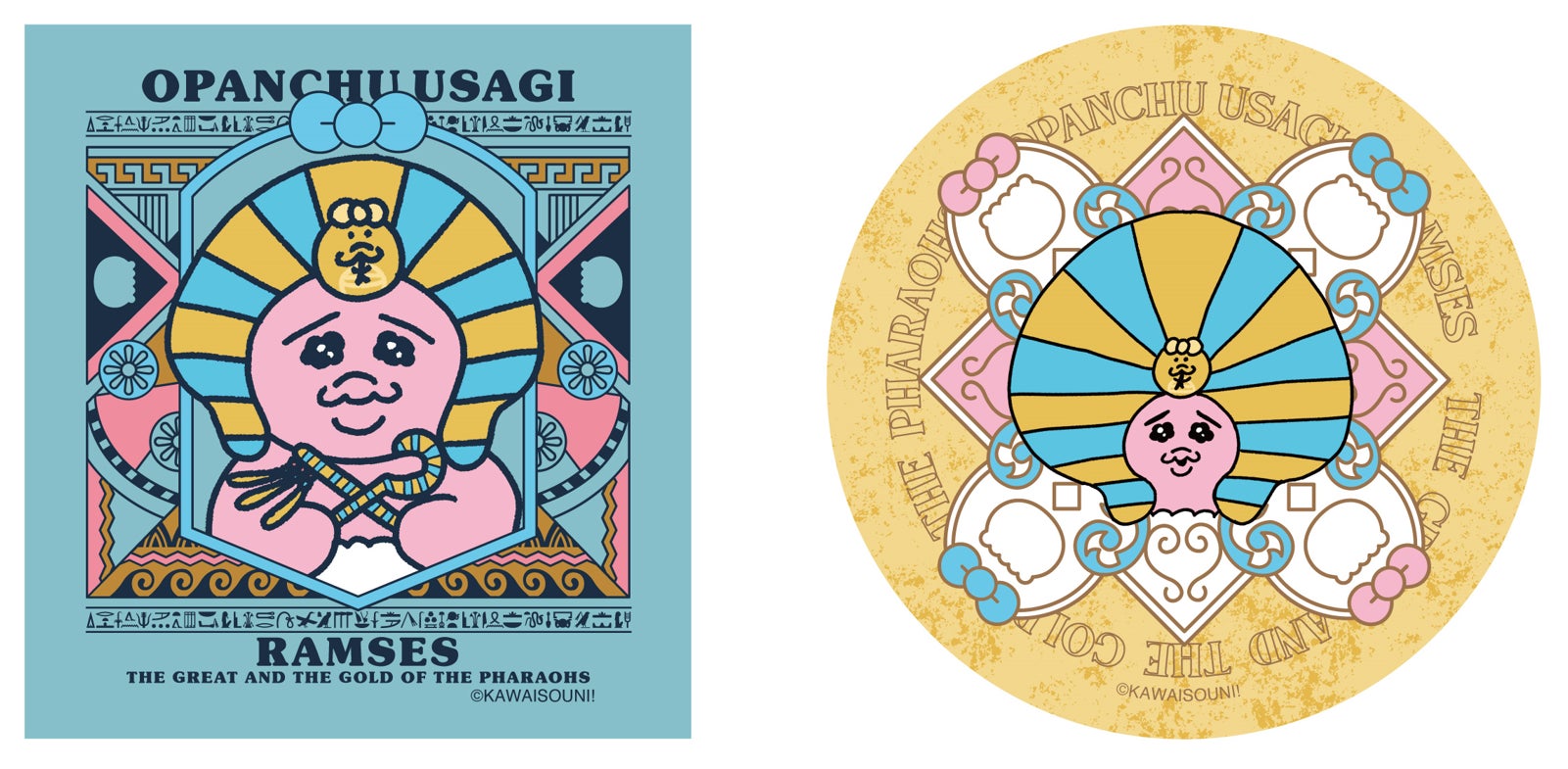 5月1日より一部商品を先行販売することが決定!展覧会開催記念として、ファラオに扮したおぱんちゅうさぎや、メジェド風おぱんちゅうさぎグッズが登場!