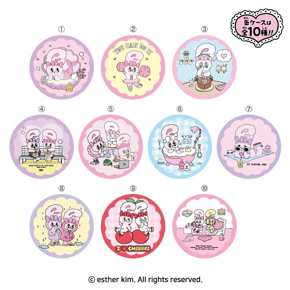 全10種類のカラフルなデザインは、見ているだけで元気になれそう♪ お部屋に飾ったり、コレクションとして集めるのもおすすめです。エスターバニーファンにはたまらないプチギフトにもぴったり🍬✨