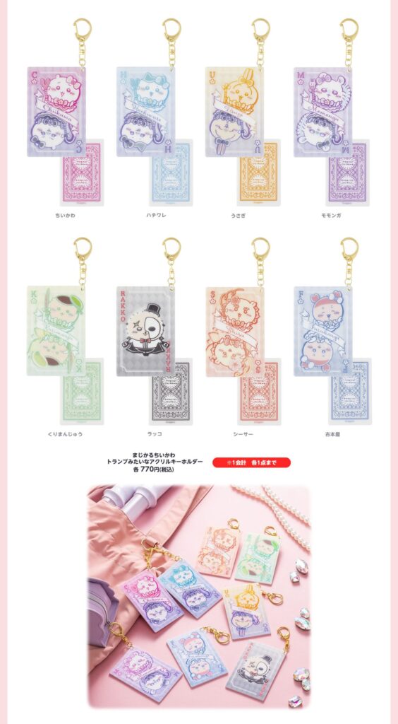 どのアイテムも「トランプ×キラキラ×ちいかわ」の世界観がぎゅっと詰まっていて、とてもかわいいです♪特にアクリルグッズやおしゃれなTシャツは普段使いにもぴったりです♡