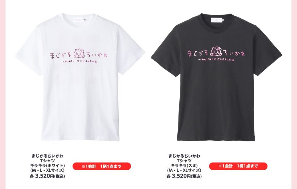 まじかるちいかわ Tシャツ(ホワイト/スミ)各3,520円(税込)