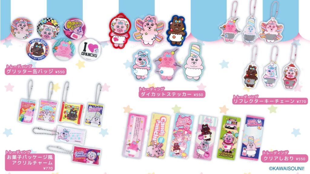会場では、新作グッズの販売に加え、工場の世界観を再現した店内装飾が展開されます。甘くてカラフルな空間で、おぱんちゅたちと一緒にキャンディ作りの世界を体験できます。