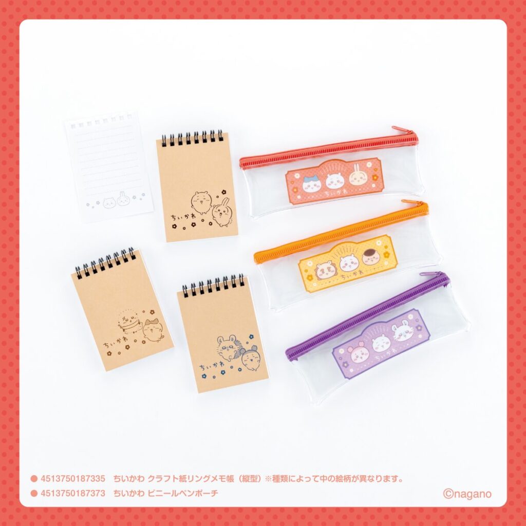 ちいかわ クラフト紙リングメモ(縦型)/ビニールペンポーチ