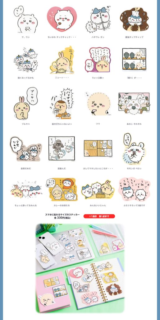 スマホに貼れるサイズのステッカー 各330円(税込)
