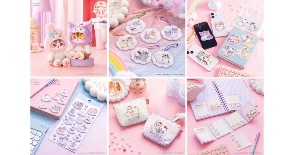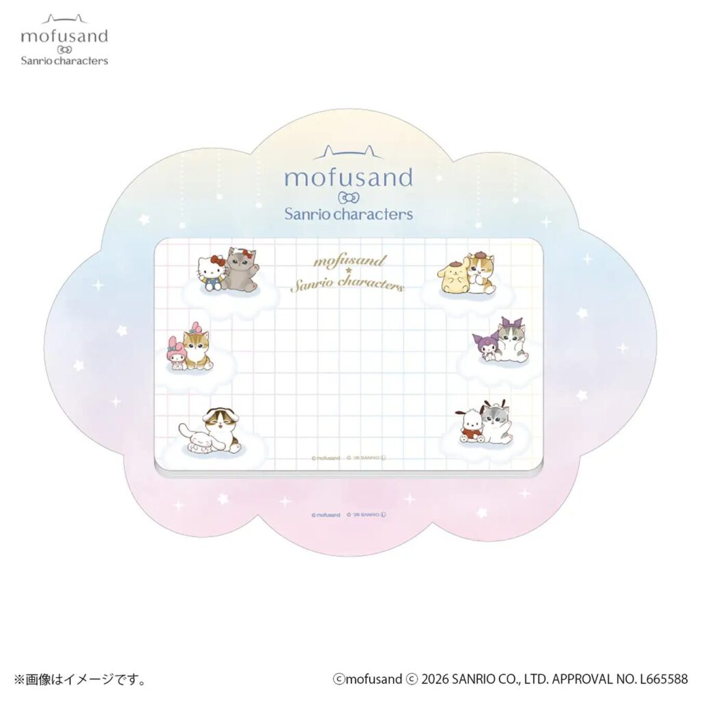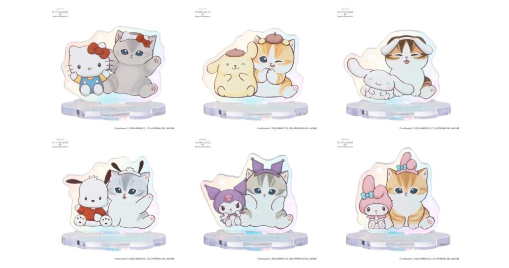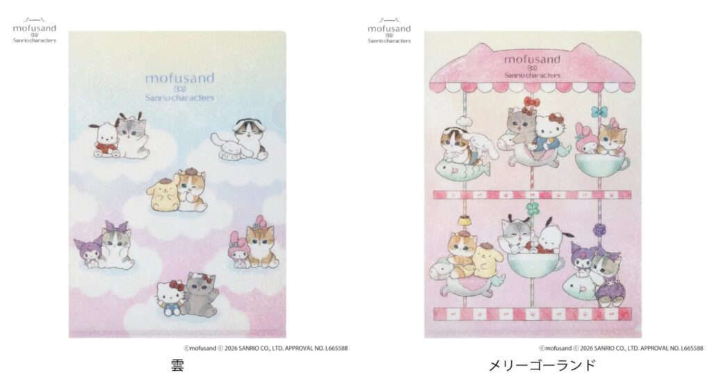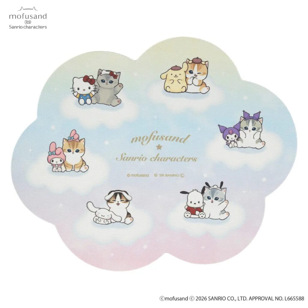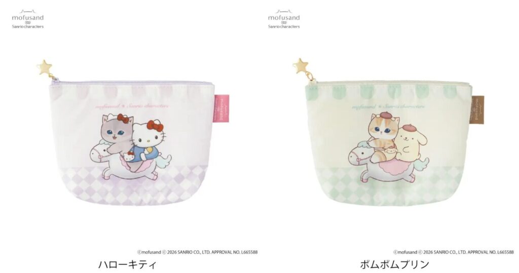 mofusandはSNSを中心に人気を集め、2026年1月からはアニメも配信スタートしています。サンリオキャラクターズとのコラボはこれで3回目!今回は遊園地をテーマに、ふわふわなにゃんこのマスコットや、メリーゴーランドなポーチなど、やさしい色使いのアイテムが勢揃いします。