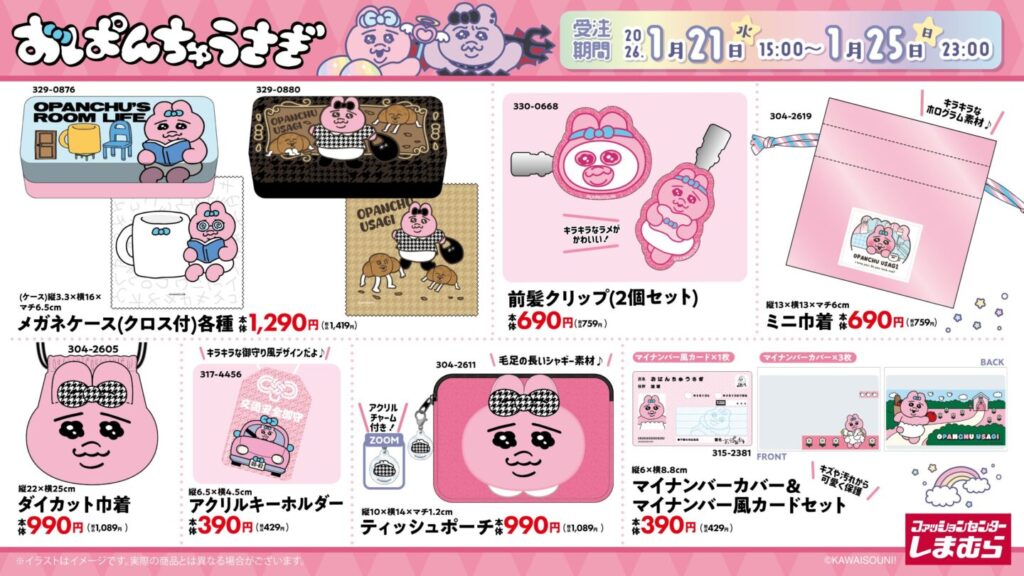 10/7号「おぱんちゅうさぎ」一部グッズががしまむらオンラインストアで受注再販決定♪
