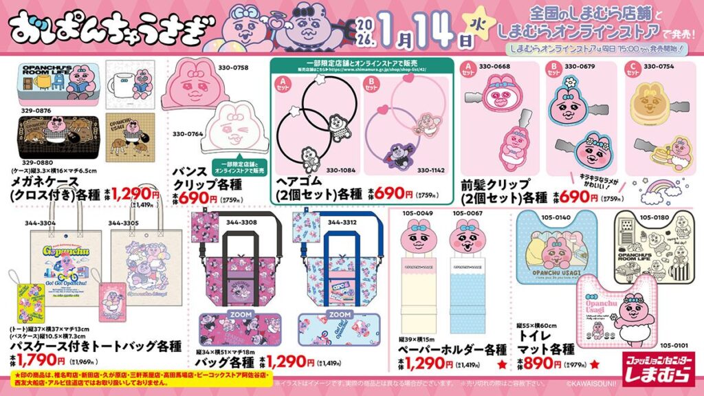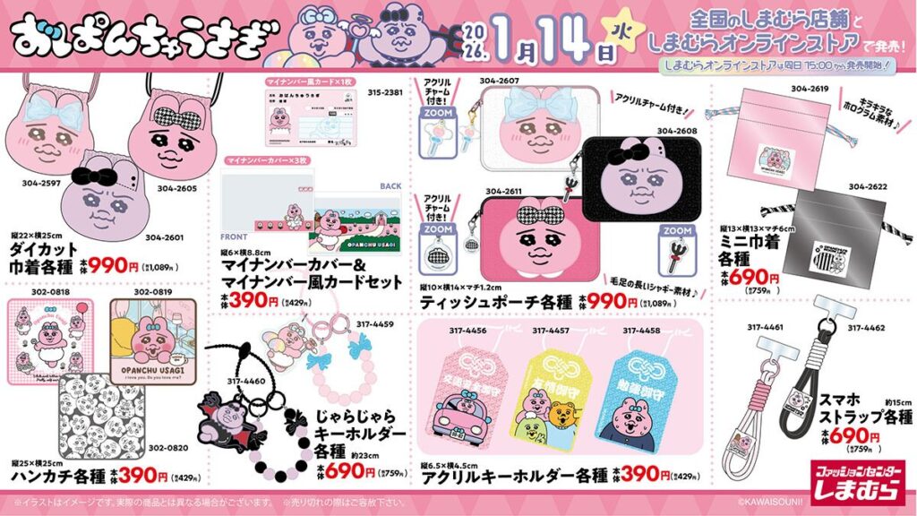 2025年2月19日(水)より、全国のしまむら店舗およびオンラインストアで、おぱんちゅうさぎの新作グッズが登場!