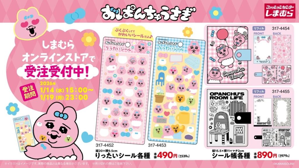 1月14日~ おぱんちゅうさぎ×しまむら シール・シール帳 受注販売