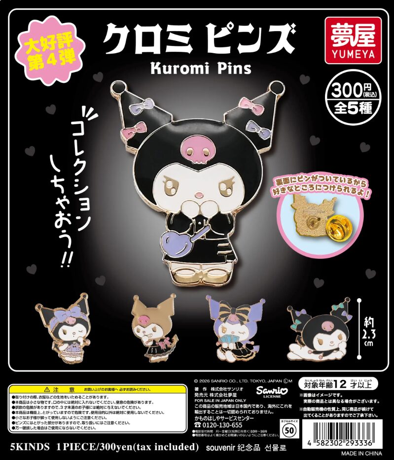 ラインナップは全5種で、表情やポーズの違うクロミを楽しめる構成。約2.3cmの程よいサイズ感で、バッグやポーチ、帽子などに付けやすいのも魅力です。裏面にはピン付きなので、好きな場所に飾って楽しめます。コレクション性も高く、クロミ好きには見逃せないシリーズです。