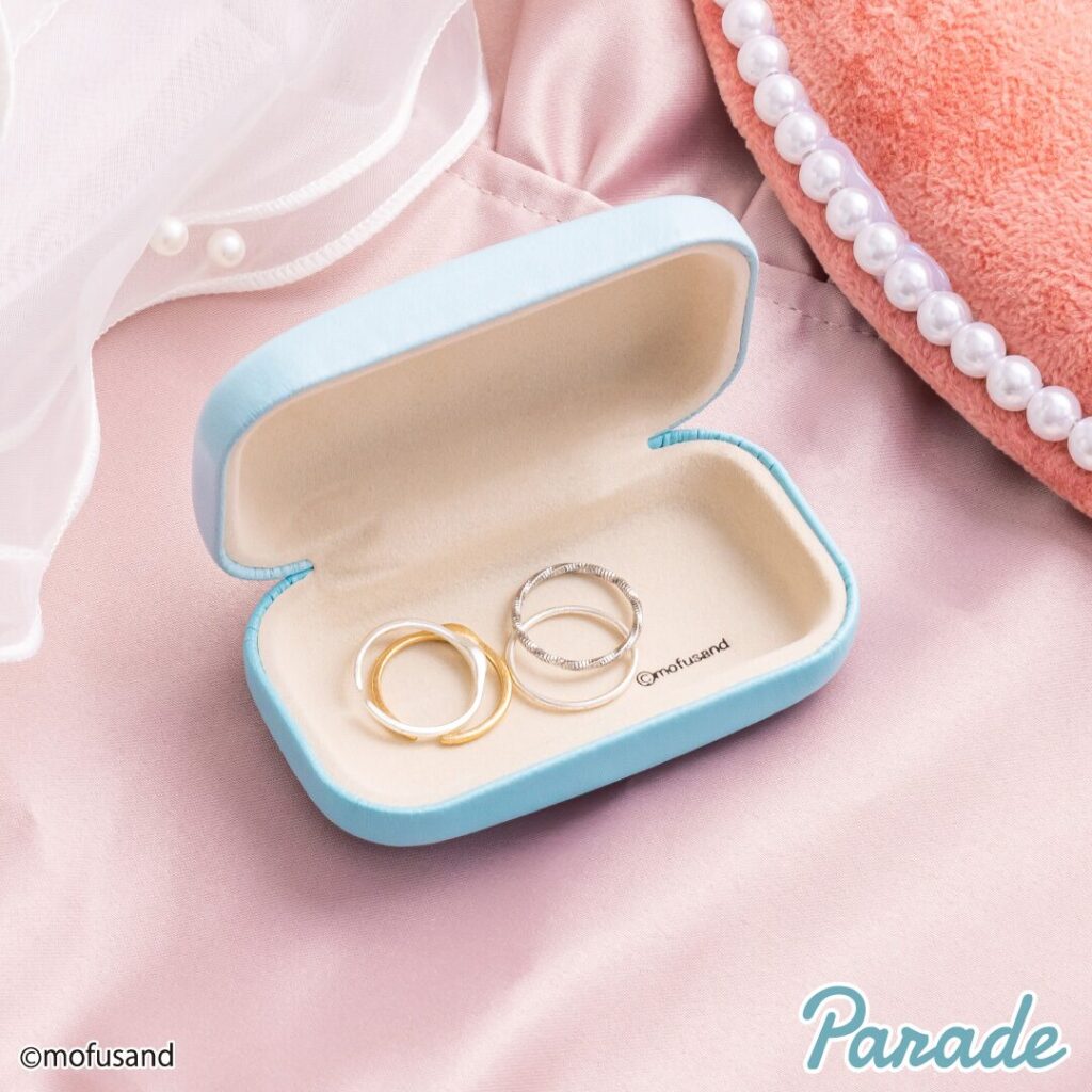 「mofusand」のスイーツにゃんなジュエリーミニケースが登場。スイーツとにゃんこの可愛いイラストに、ゴールドの箔押しロゴがアクセントになった上品なデザインのミニケースです。