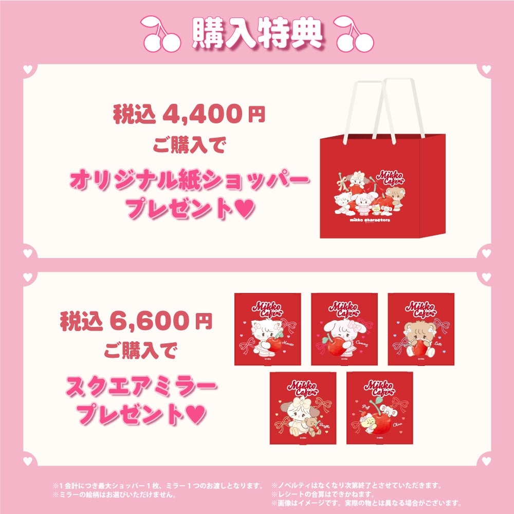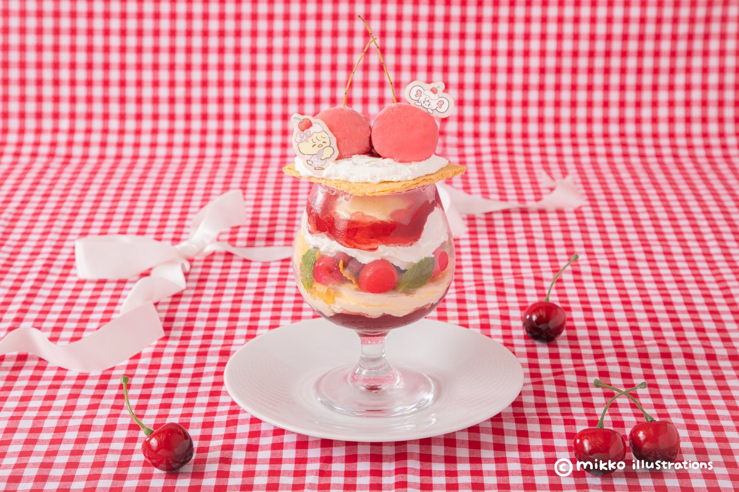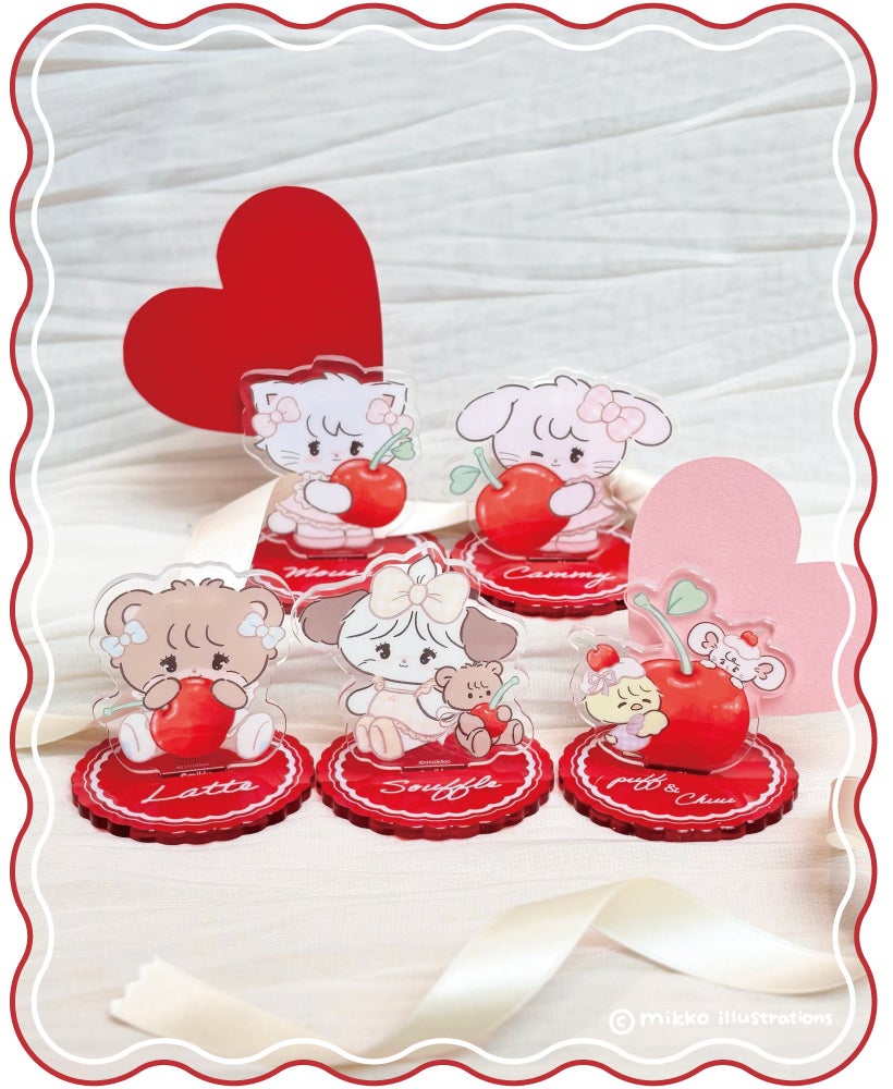 2025年7月10日(木)より、「チェリー」をテーマに、mikko charactersの新規描き下ろしイラストが登場!ムース、キャミー、ラテ、スフレ、パフ、チューの6キャラクターがカフェメニューやグッズになって、東京・大阪の2都市で開催されます。