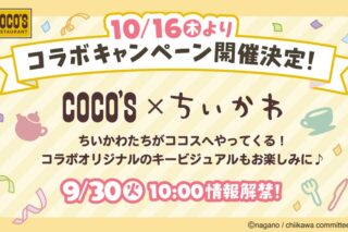 コラボ 【ココス】ちいかわが店員姿で登場!数量限定メニューとコラボグッズが2025年10月16日より販売開始! 2025年10月16日(木)より、ファミリーレストラン「ココス」で人気キャラクター「ちいかわ」とのコラボキャンペーン「ココスへようこそ!おいしいってしあわせキャンペーン」が全国507店舗(空港店舗を除く)で開催されます。今回のキャンペーンで... 2025.09.30 コラボちいかわ新商品